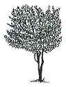 בודד, קבוצה, גדר חיה ומחיצה, עץ רחוב קטן, עץ פרי אקזוטי, פיסולי.