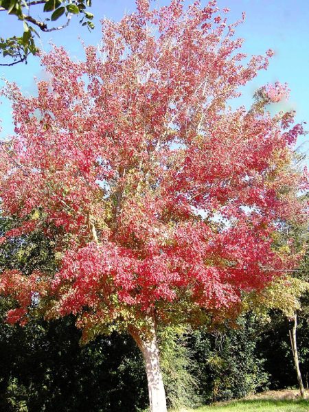עץ נוי מרשים במיוחד: עלווה ירוקה תלת-אונתית יפה, לבלוב אביבי אדמדם ושלכת אדומה מרהיבה בסתיו.